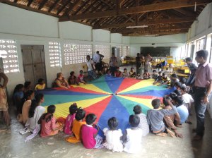 A one day Children’s Workshop was conducted by Linda Rose from the UK on 19th October 2013 at the Hondavil Hindu Mahavidyalayam where 42 children participated. Many games and activities were done such as Parachute cloth game, Drawing, Golden hands and puppet show.